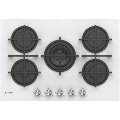Candy CVG6BR4WPW Piano Cottura A Gas 4 Zone Griglie In Ghisa 60 Cm Vetro Temperato Bianco