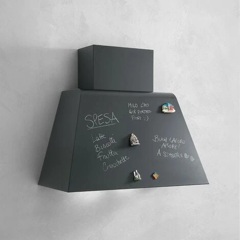 La cappa k129 in nero lavagna, consente di poter appuntare qualsiasi informazione necessaria direttamente sul fronte della cappa.