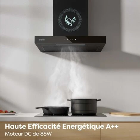 CIARRA CD6102B Cappa decorativa a parete 60 cm, finitura nera opaca, Touch Control, motore DC 85W, classe energetica A++, funzione Booster