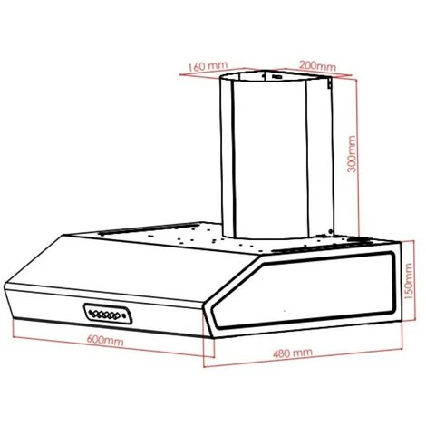 Cappa con camino in acciaio inox da 60 cm. Dotata di un motore e comandi push button.