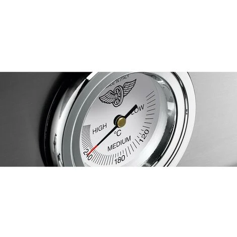 Il corpo, il piano cottura e i supporti sono in acciaio inox, i bruciatori sono in ottone, le griglie sono in ghisa, gli interruttori sono in metallo con rivestimento Soft Touch.