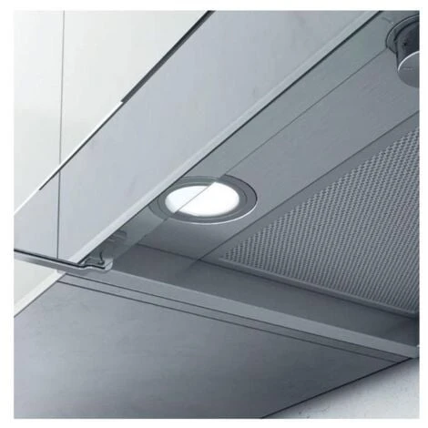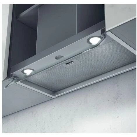 Eico Box In 60. Potenza massima di estrazione: 370 mⁿ/h, Tipo di estrazione: Aspirante/Filtrante, Classe di efficienza dinamica del fluido: E. Tipo: Integrato, Colore del prodotto: Acciaio inossidabile, Materiale della scocca: Vetro, Acciaio inossidabile. Tipo di filtro antigrasso: Antracite. Potenza lampadina: 2,5 W, Numero di lampadine: 2 lampadina(e), Tipo di lampada: LED. Classe efficienza energetica: D, Consumo energetico annuo: 54,8 kWh, Scala di efficienza energetica: Da A++ a E