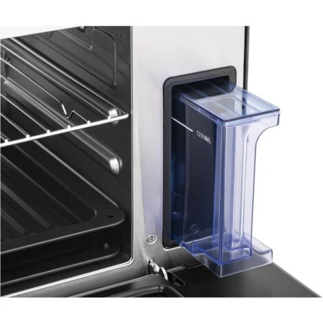 Con una potenza di 2100 W, la resistenza del forno raggiunge velocemente la temperatura desiderata. Il calore viene distribuito uniformemente sul tuo arrosto o sulla lasagna grazie al vapore. Questo tipo di riscaldamento garantisce pietanze gustose e una preparazione semplice. Per posizionare gli alimenti nel forno ad acqua, nella spedizione sono incluse una griglia e una teglia.