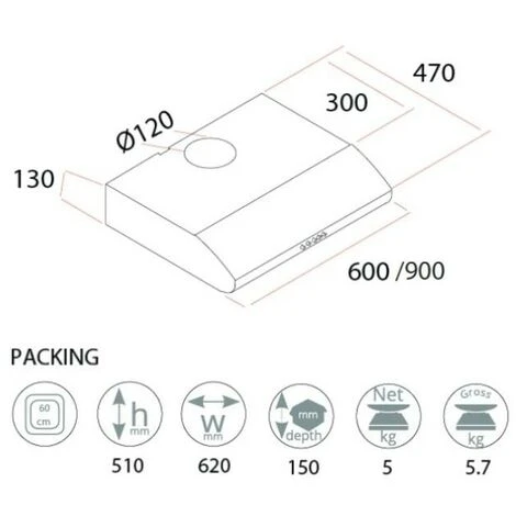 Gruppo cappa sottopensile Classico 90 inox Samet
