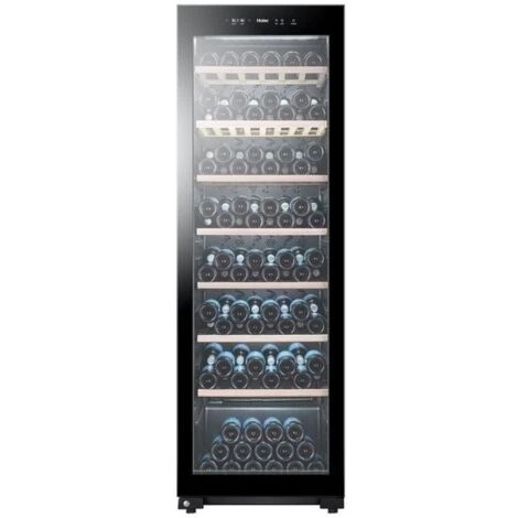 Haier WS171GA. Posizionamento dell’apparecchio: Libera installazione, Colore struttura: Nero, Colore interno: Nero. Capacità bottiglie: 171 bottiglia/bottiglie, Tipo di prodotto: Cantinetta vino con compressore, Intervallo temperatura (zona 1): 5 – 20 °C. Classe efficienza energetica: G, Consumo energetico annuo: 164 kWh, Scala di efficienza energetica: Da A a G. Tipo di controllo: Sensore, Tipo di display: LED, Tipo di lampada: LED. Larghezza: 595 mm, Profondità: 639 mm, Altezza: 1850 mm