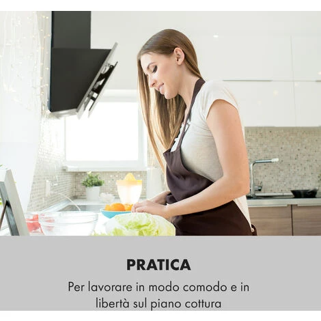 Aria pura in cucina: la cappa aspirante Alessia di Klarstein dà un tocco di splendore alla cucina ed elimina con slancio vapori e odori.
