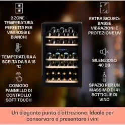 FACILE DA GESTIRE: il pannello touch della cantinetta ti consente di impostare una temperatura costante per mantenere i tuoi vini freschi e pronti per essere serviti. Il display LCD mostra la temperatura interna per il controllo di ogni vino.