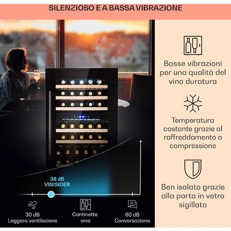 OPERATIVITA’ SILENZIOSA: Il motore silenzioso assieme all’elegante design rende la nostra cantinetta vino verticale il miglior frigo vino per la conservazione professionale di vino a casa tua, nei bar, ristorante, sale di degustazione e altro ancora.