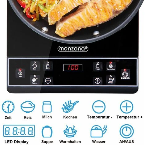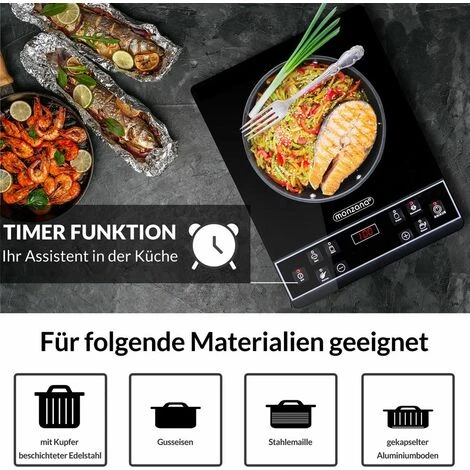 La superficie di cottura della piastra a induzione è realizzata in cristallo di alta qualità ed è protetta dal surriscaldamento.
