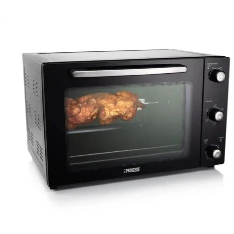 L’elegante forno elettrico ventilato Princess non solo ha il riscaldamento per convezione superiore e inferiore, ma ha anche due speciali impostazioni per girarrosto. Potrai preparare il migliore pollo alla griglia a casa tua. Riceverai uno spiedo girarrosto gratuito, per diffondere in casa il delizioso profumo di pollo alla griglia.