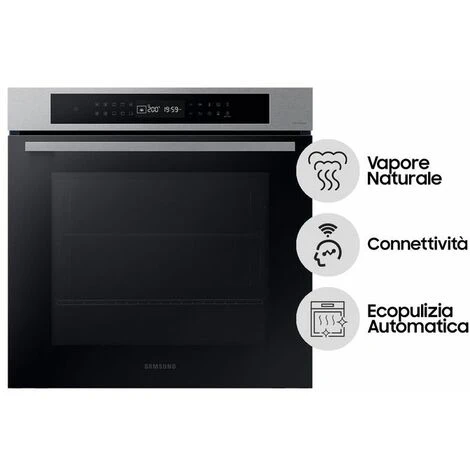 Samsung NV7B4040VBS Forno Elettrico Multifunzione Da Incasso A Vapore Capacità 76 Litri Classe Energetica A 20 Programmi Wi-Fi Vocale Assistente 59,5 Cm Nero/Acciaio Inossidabile